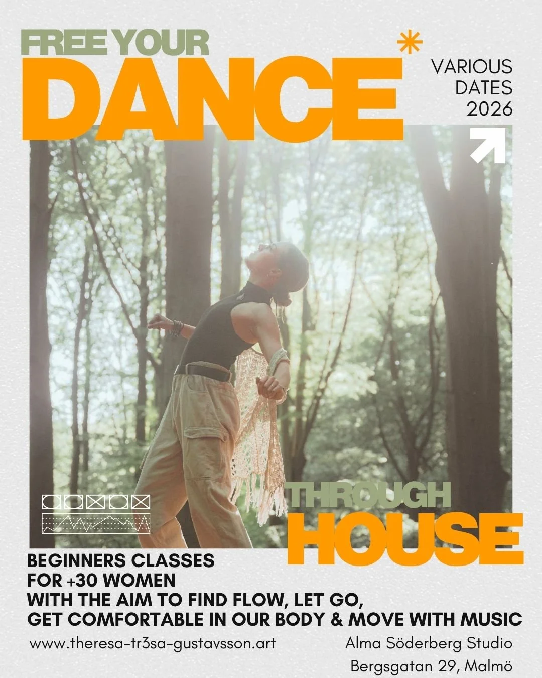 My aim is to create a safe space where I by, step by step, guidance bring us on a exploration of movement and rhythm to get more comfortable in ourselves(our bodies). I will share my curiosity for dance, body function, nervous system, flow, rhythm and different movement techniques all with house music being our main source of inspiration. I will share steps, movement ideas, concepts and tools for everyone to explore on their level and we will focus on the state of curiosity and release to open the door to creativity and get more comfortable in our selves and to free our selves in dance. Classes can be taught in Swedish and English.